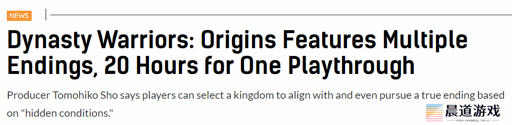 近期,备受瞩目的游戏《真三国无双:起源》的制作人庄知彦,在接受各大媒体采访时,十分详尽地介绍了游戏相关情况。尤其是关于游戏时长以及结局特点方面,据其透露,玩家想要解锁游戏中的一个结局,大致需要花费20小时的时间呢。