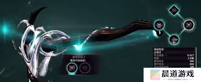 巨型镰刀暮斩是双手镰刀。这也是一把近战类得武器,暮斩的外观不仅极为炫酷,属性面板更是极为出色,尤其是她的基础伤害要比其他武器高出了很多倍,这是一把纯粹的力量型武器。它普通攻击的第二下平a还可以触发切割伤害,格挡前进也极有侵略性,重击技能是三段式的攻击,其中有一段攻击也可以触发强势切割的效果。