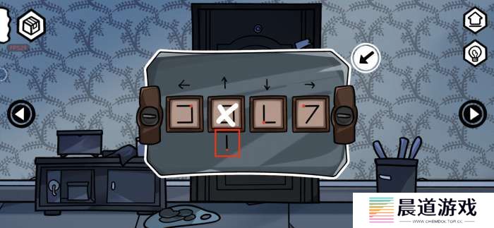 画像周围的符号开柜子里的盒子,按形状位置打开盒子,拿到一串钥匙