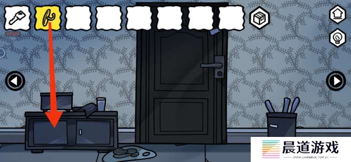 得到的木块在门边的木盒使用,拿到一把钥匙
