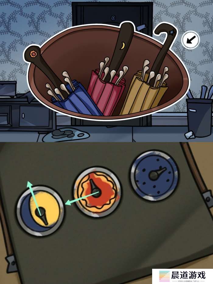 钥匙上的图案结合纸条线索放好位置,转动对应的次数(第一个箭头不动)
