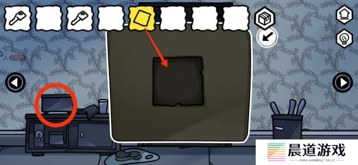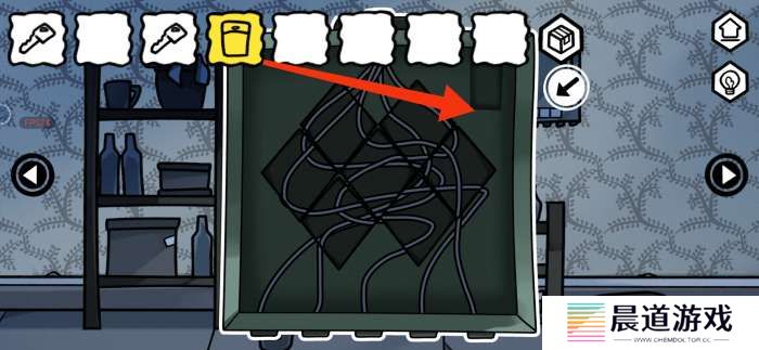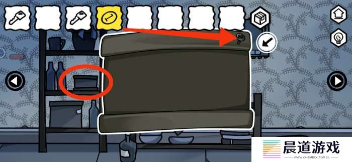 用盒子中的线索打开矮架子上的木盒,拿到最后一把钥匙
