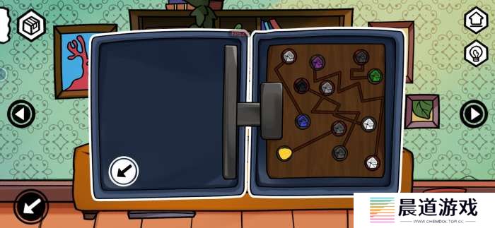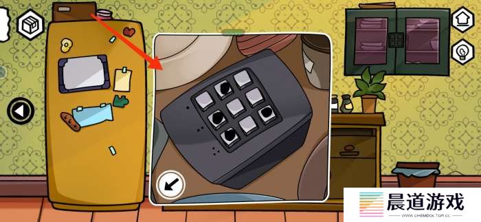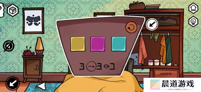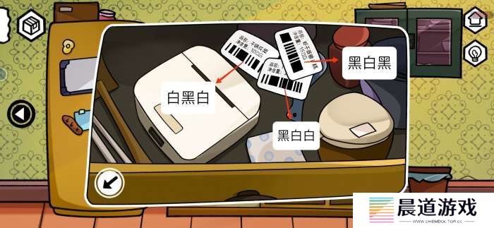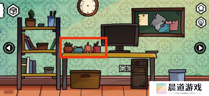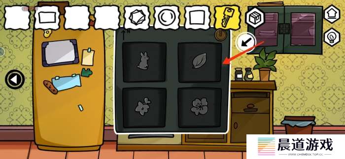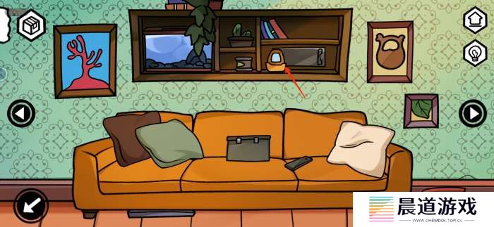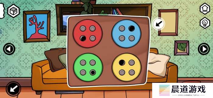 植物植物下的线索是开沙发右侧的盒子,按纸条上颜色的位置打开盒子