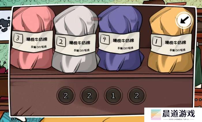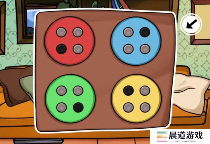 回到沙发场景,调整一下沙发下面的宝石游戏,灰色由浅到深对应的依次是紫色-蓝色-深灰-黄色-绿色-白色,调整完毕后获得菊花结的解法,注意这里如果没能打开可能就是灰色不太对,调整一下灰色的灰度就行。