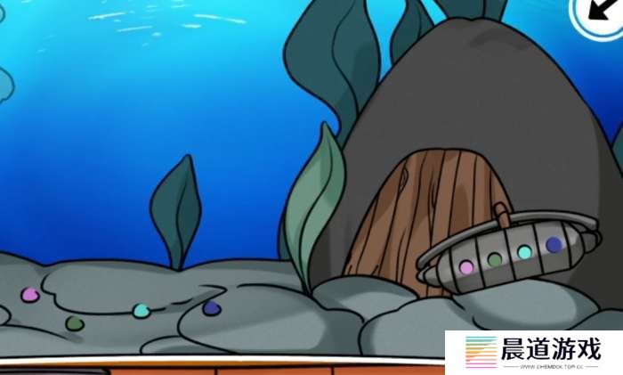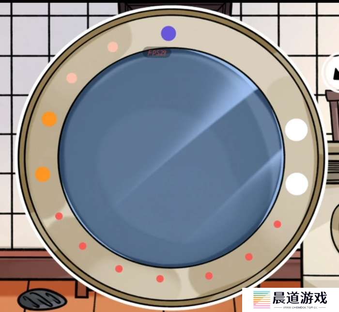 回到门口此时出现了向左的箭头,点一下进入浴室场景,洗衣机的门上图案很特殊,记下来1蓝色,2肉色,2黄色,7红色,2白色,回忆一下卧室场景,好像冒险的颜色除了红色的其他都有,所以去掉红色我们获得了数量1蓝色2肉色2黄色2白色。