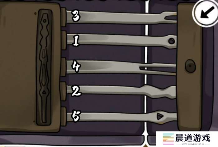 这应该算是游戏里最简单的谜题了,按照左边提示从上到下的顺序点击叉子依次收回就获得了开罐器,注意点错了的话退出重新点一下就行。