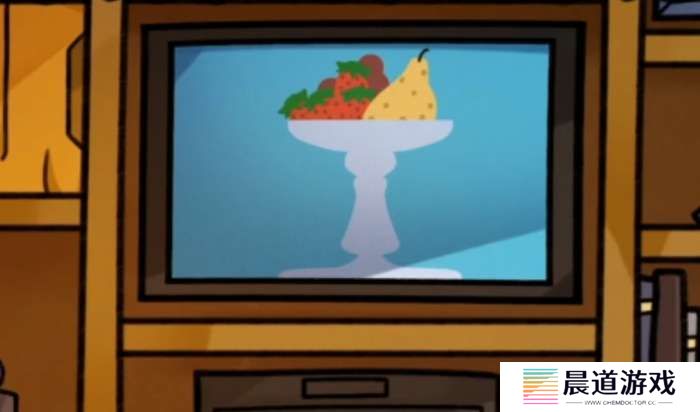 查看一下电视下面的抽屉,点击上面的数字密码35619后放入两张游戏卡,电视上开始有三个图案,都很重要!不过第一个暂时用不上,下面的两个每个果盘中都有三种水果,记下来草莓-梨-杨梅-桃-苹果-西瓜,这几个水果也有点眼熟,不就是笔记本上面的。