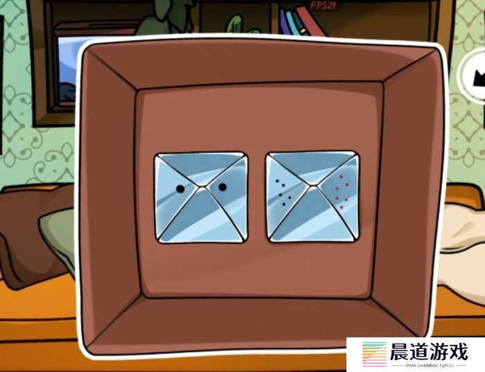 桌子右侧有个手机,提示很奇怪,是白色和黄色的球球还画了个交换按键,交换完毕后有一个左下黑右上白,一个上白下黑,一个左黑右白,查看书架第二层的盒子,发现是黑白色按钮,将圆形图标的物品放上去发现变成了黑白色按键,这就是传说中的备用按钮啊!