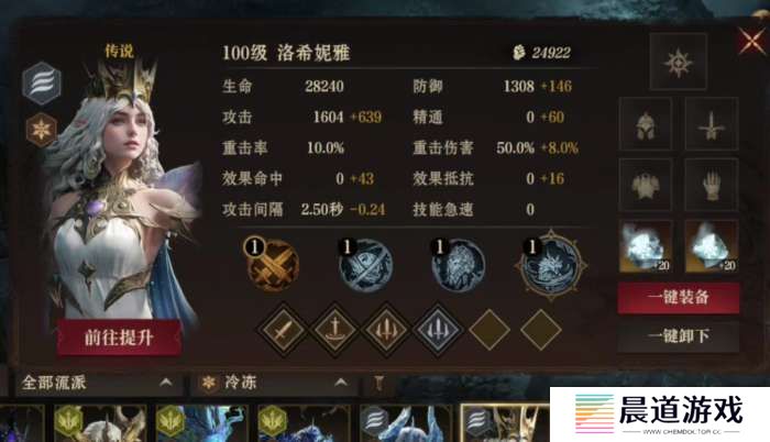 冰霜队伍的核心输出单位是洛希尼亚,她拥有极高的寒冰属性转化率,并且在释放了aoe技能后,可以直接给全场都附加寒霜伤害。
