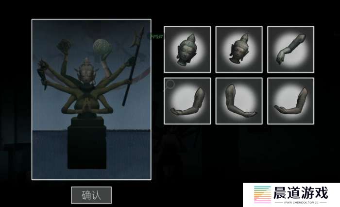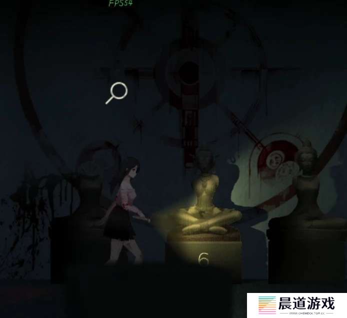 继续往右走门的右上角有个通风口,调查一下提示要梯子,然后走到最右边进入房间,把房间里的三个雕像的头和手都取下来,注意中间的雕像下面写了个6,这也是后面的线索,继续往右走有个机器,查看一下在中间位置拿到一本小册子是踩月亮习俗,再往右一点还有个黑色方块是录音笔,打开有奇怪的文件,这些都是剧情道具解谜用不到哦~
