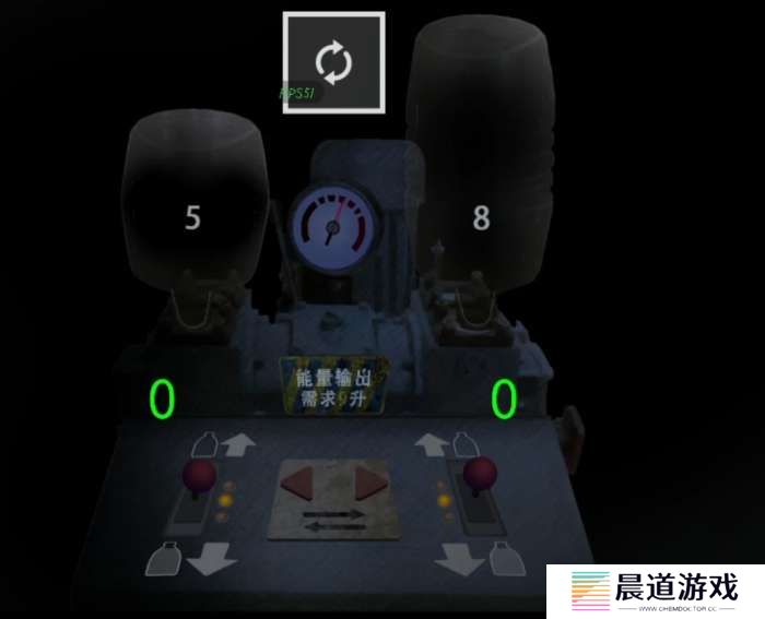 这个机关简单一说,下面的按键都能点,箭头向上是倒空,向下是装满,中间的左右箭头是向左右转移,我们需要的是9升,也就是8+1,所以我们只需要装个1升就可以了,那么顺序就是现将右边的装满,然后转移到左边,然后将左边的都倒掉,将3升转移到左边,再次把右边的装满,再次都转移到左边,这样左边有5升右边有6升,也就是把左边的倒空,然后将6转移到左边后就剩下1升了,再次倒空左边并且将宝贵的1升转移到左边,最后将8升装满即可完成。