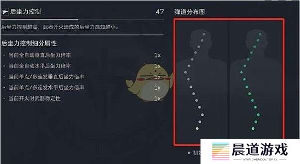 3、水平后坐力则分为单方向偏移和双向偏移,通过观察弹道分布图可以识别其偏移方向。