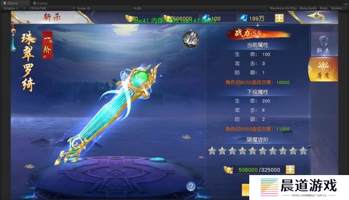 玩家可通过消耗资源提升屠魔等级,等级越高,额外伤害越高。