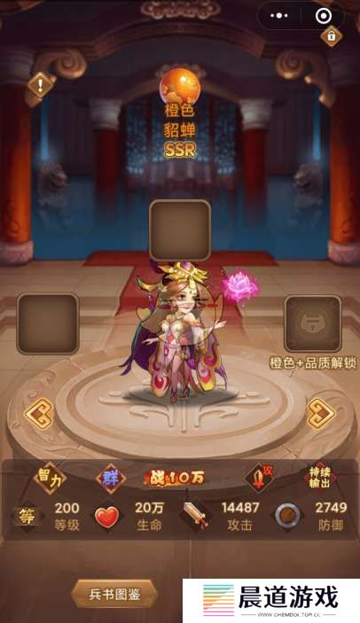 1、当武将提升到一定的品质时就会开启兵书系统,装备兵书能够使武将变得更加强大,但是想要解锁兵书就需要先将角色提升至橙色品质才行