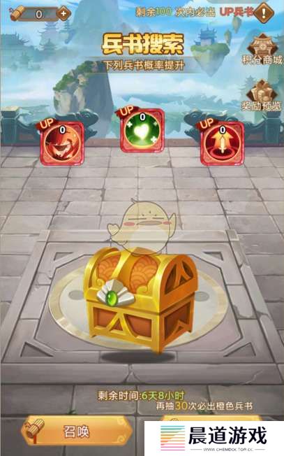4、兵书也可以像武将一样在活动内抽取,每次抽取都会获得1点积分,积分可以用来兑换指定的某一个兵书。